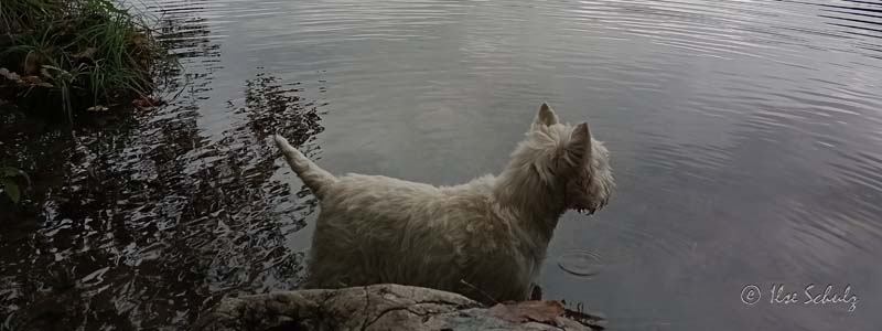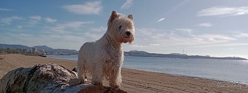 Mado ist ein Meer-Hund! Vom ganzen Naturschutzgebiet, das wir bei unserem Urlaub an der Côte d'Azur gleich ums Eck zur Verfügung haben, will sie immer nur das Meer, bei jedem Wetter und Seegang.